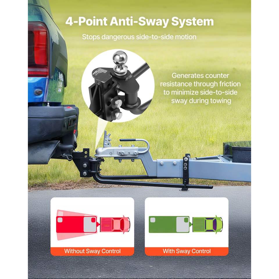 Kit di Distribuzione del Peso per Gancio di Traino con Controllo Oscillazioni, Capacità Massima 6000 Libbre, Carico Massimo sulla Lingua di Traino 600 Libbre