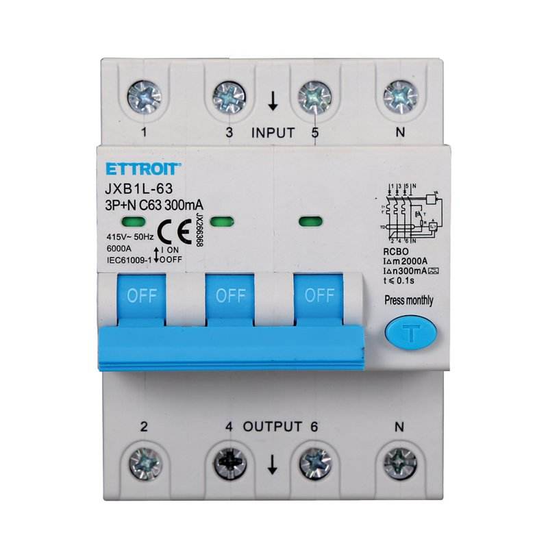 Interruttore Differenziale RCBO Certificato 6000A 300mA C63A AC 400V IP20 IEC61009-1, Curva Differenziale 3P+N 4M Magnetico