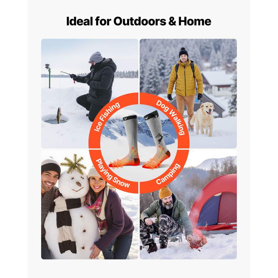 Calze Riscaldate Elettriche Ricaricabili con Batteria da 6000mAh, 4 Livelli di Riscaldamento, Controllo tramite App per Sport all'Aperto