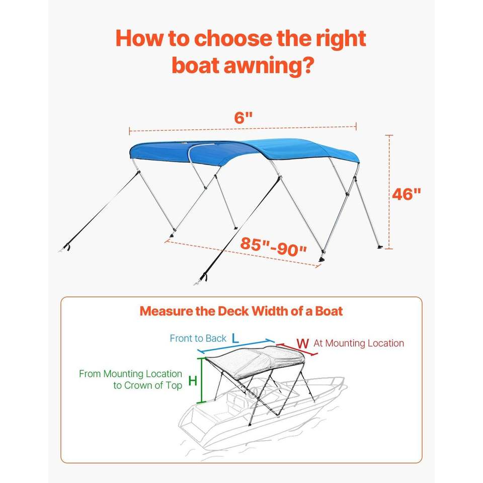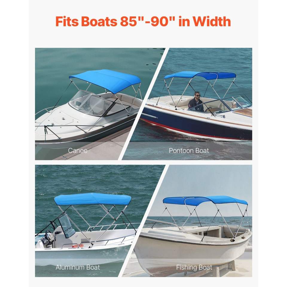 Tendalino Bimini per Barche a 3 Archi in Poliestere 600D con Telaio in Lega di Alluminio, Impermeabile, Parasole, Tettuccio per Barche con Vano Portaoggetti