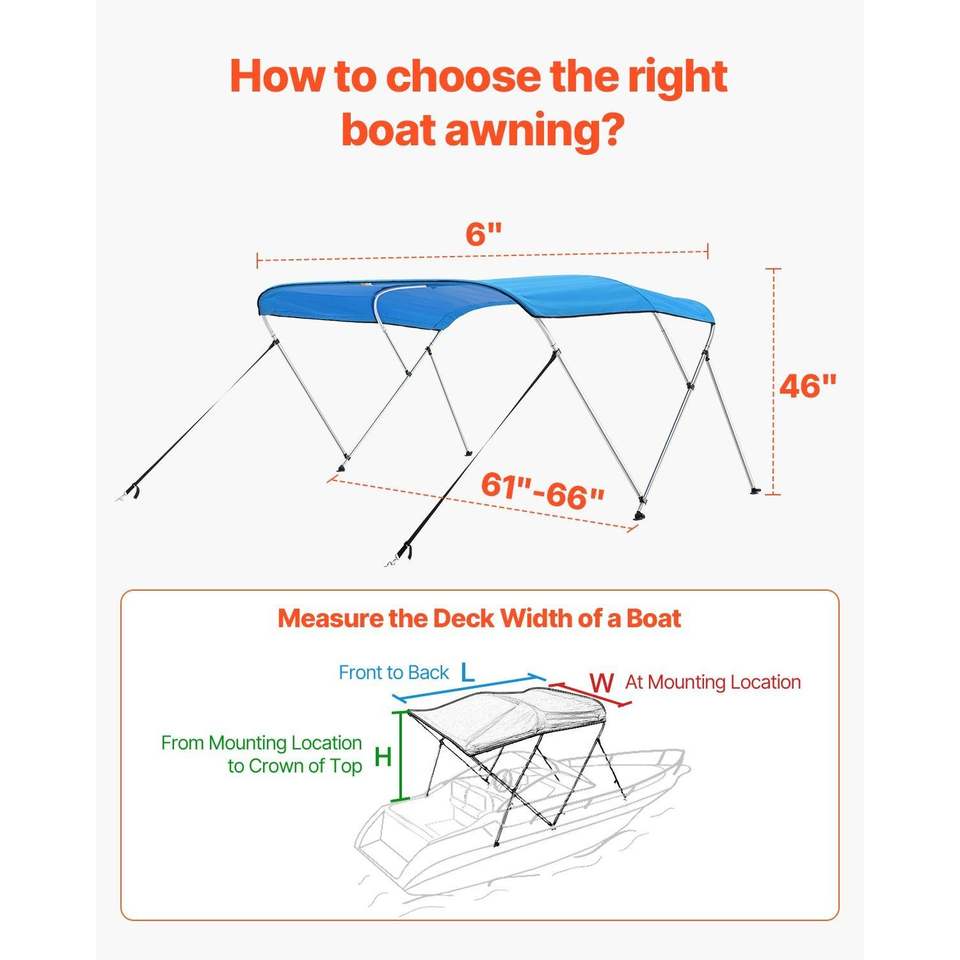 Tendalino Bimini per Barche a 3 Archi in Poliestere 600D con Telaio in Lega di Alluminio, Impermeabile, Parasole, Tettuccio per Barche con Vano Portaoggetti