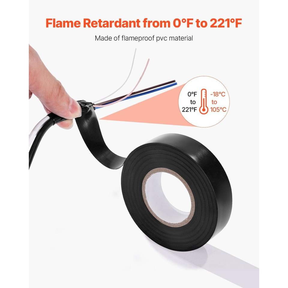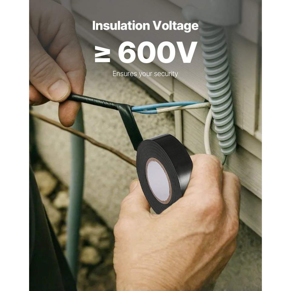 Nastro Isolante Elettrico 600V, 10 Rotoli 3/4 X 66 ft, PVC per Uso Generale 0 221 F, Ignifugo e Impermeabile