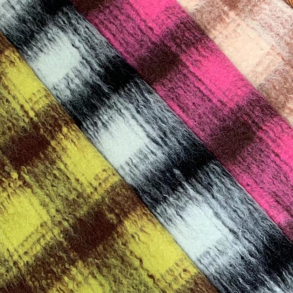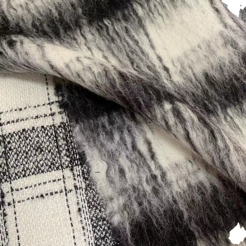 600g 68% lana 6% alpaca 26% poliestere tessuto ondulato per capelli lunghi morbidi a quadri singoli