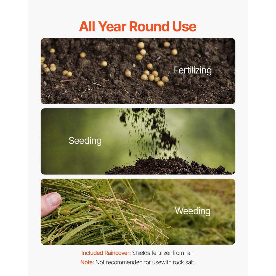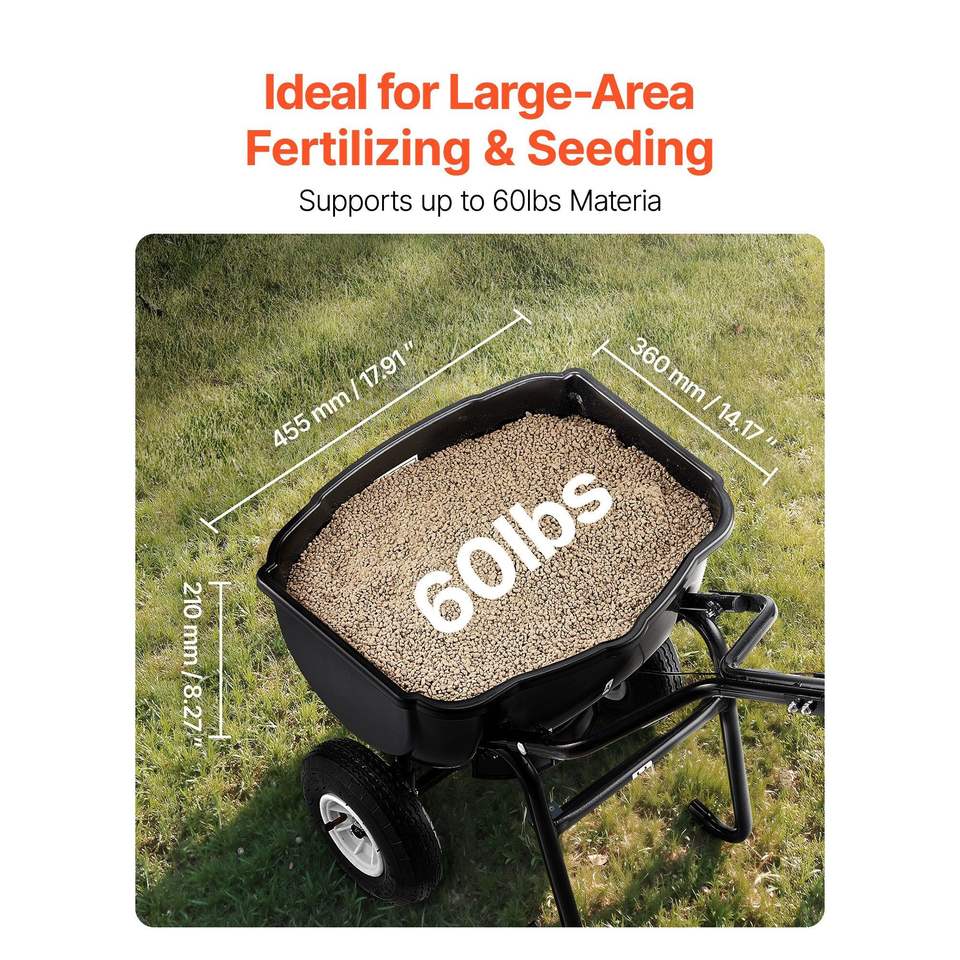Spargitore a Spinta con Capacità di 60 LBS, Larghezza di Spargimento 0-9,8 Piedi, 8 Pneumatici All-Terrain, Spargitore a Piedi per Fertilizzanti