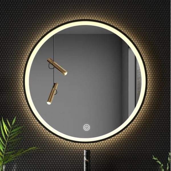 Specchio LED Rotondo Nero da 60cm, Specchio Moderno con Illuminazione