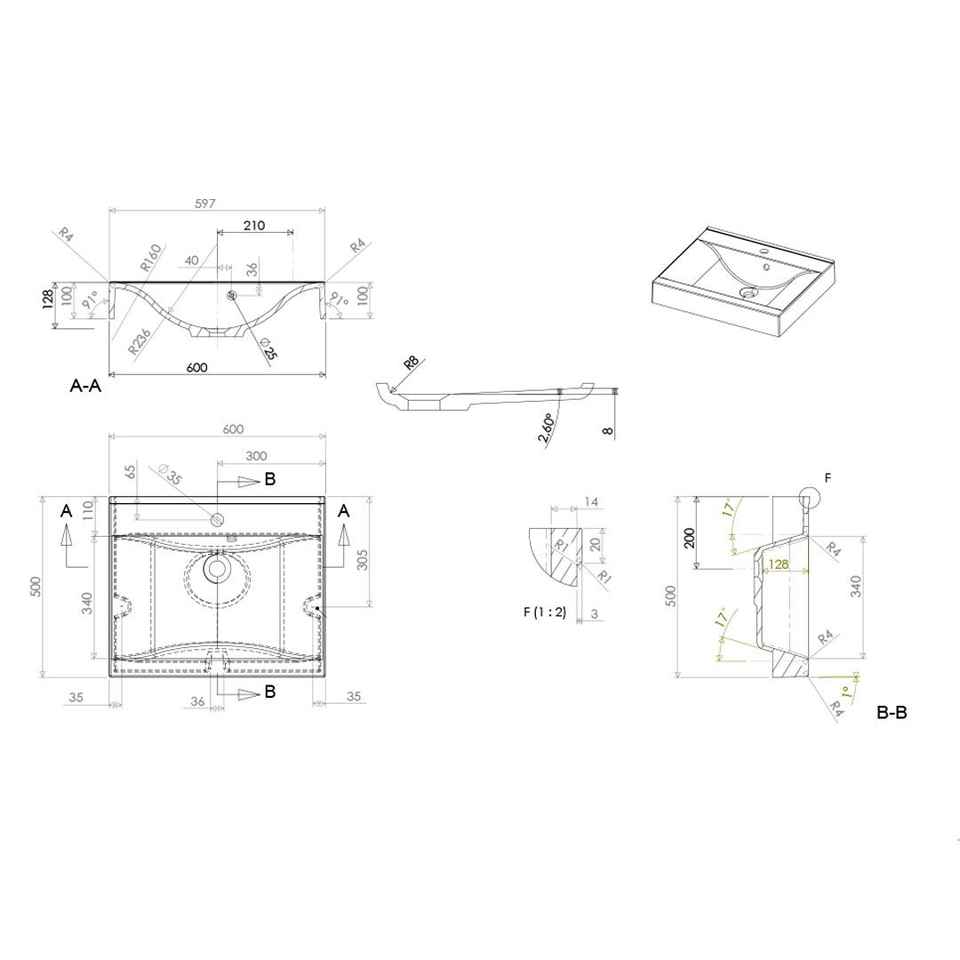 Lavabo da Appoggio Moderno KORICINI 60cm in Resina PET con Vasca Centrale, Design Durevole ed Elegante, Prodotto in Italia per Uso Domestico