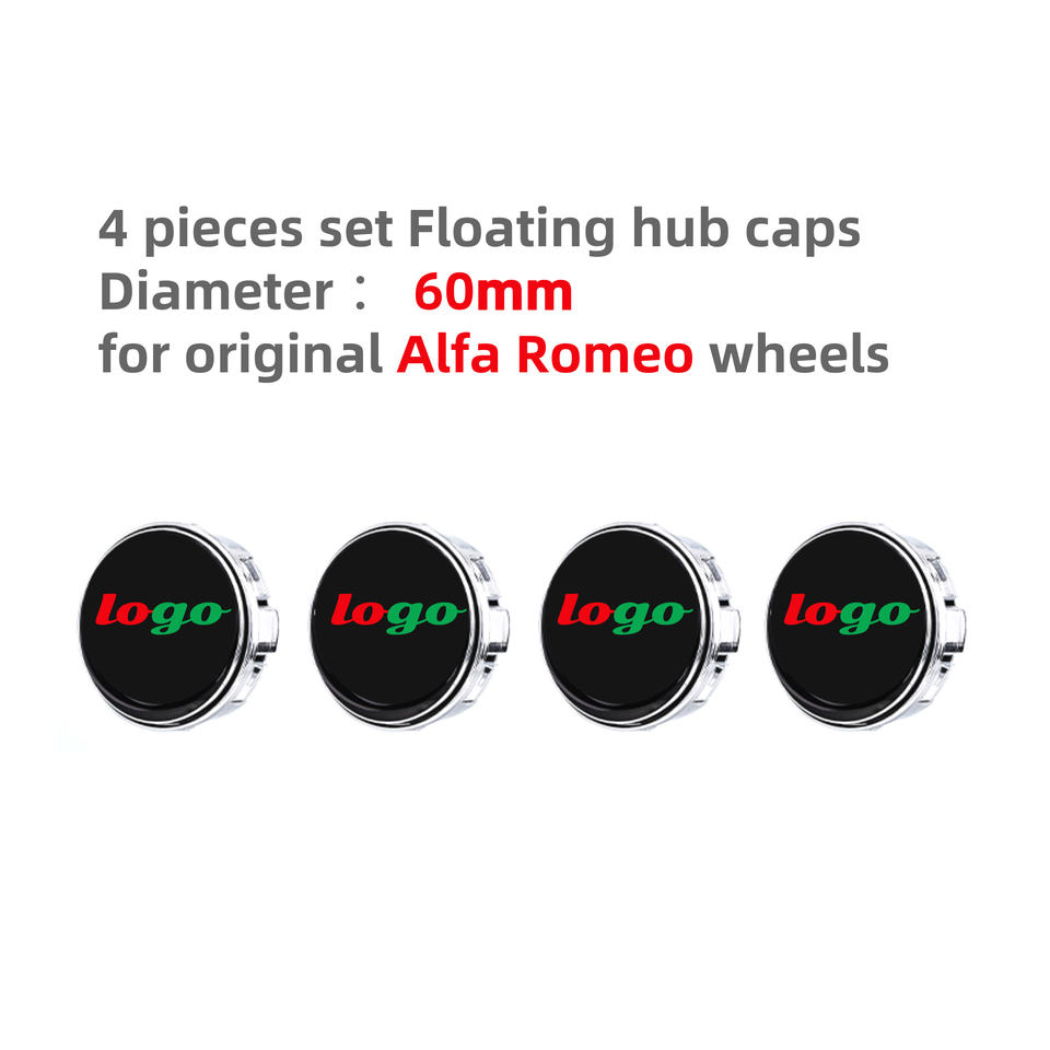 Set di 4 Coprimozzi Flottanti Neri da 60mm per Alfa Romeo GT 147 159 166 156 4C Spider Giulia Giulietta Tonale con LED