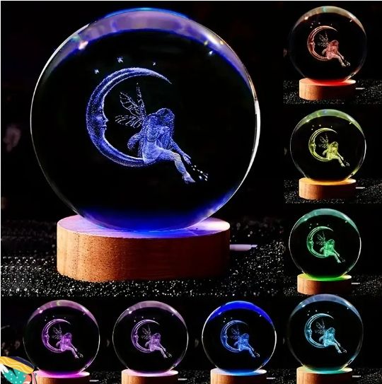 60mm fata sulla luna sfera di cristallo compleanno di san valentino luci regalo di natale multicolore palla luce notturna