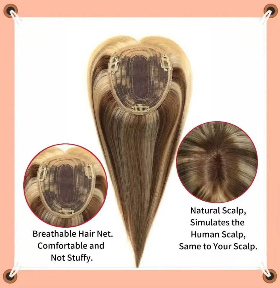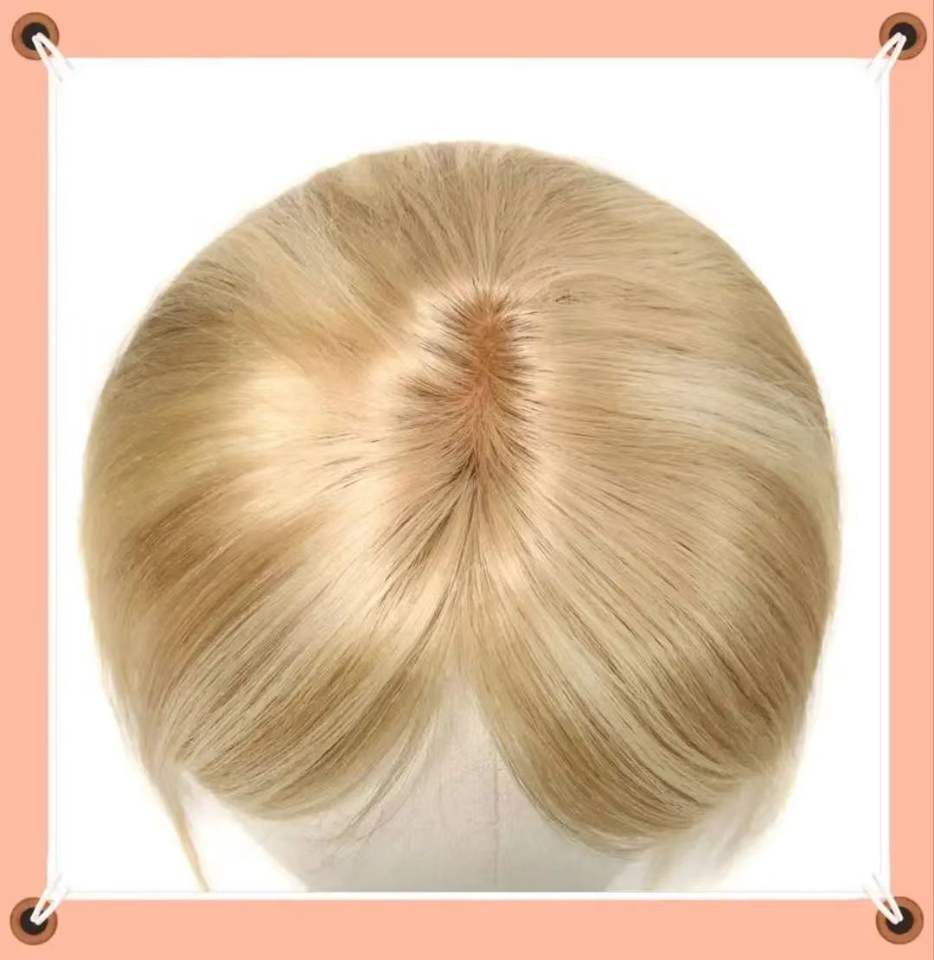 Topper per capelli umani biondi 613 con frangia, 100% capelli vergini brasiliani lisci, parrucca con parte libera in pizzo per donna