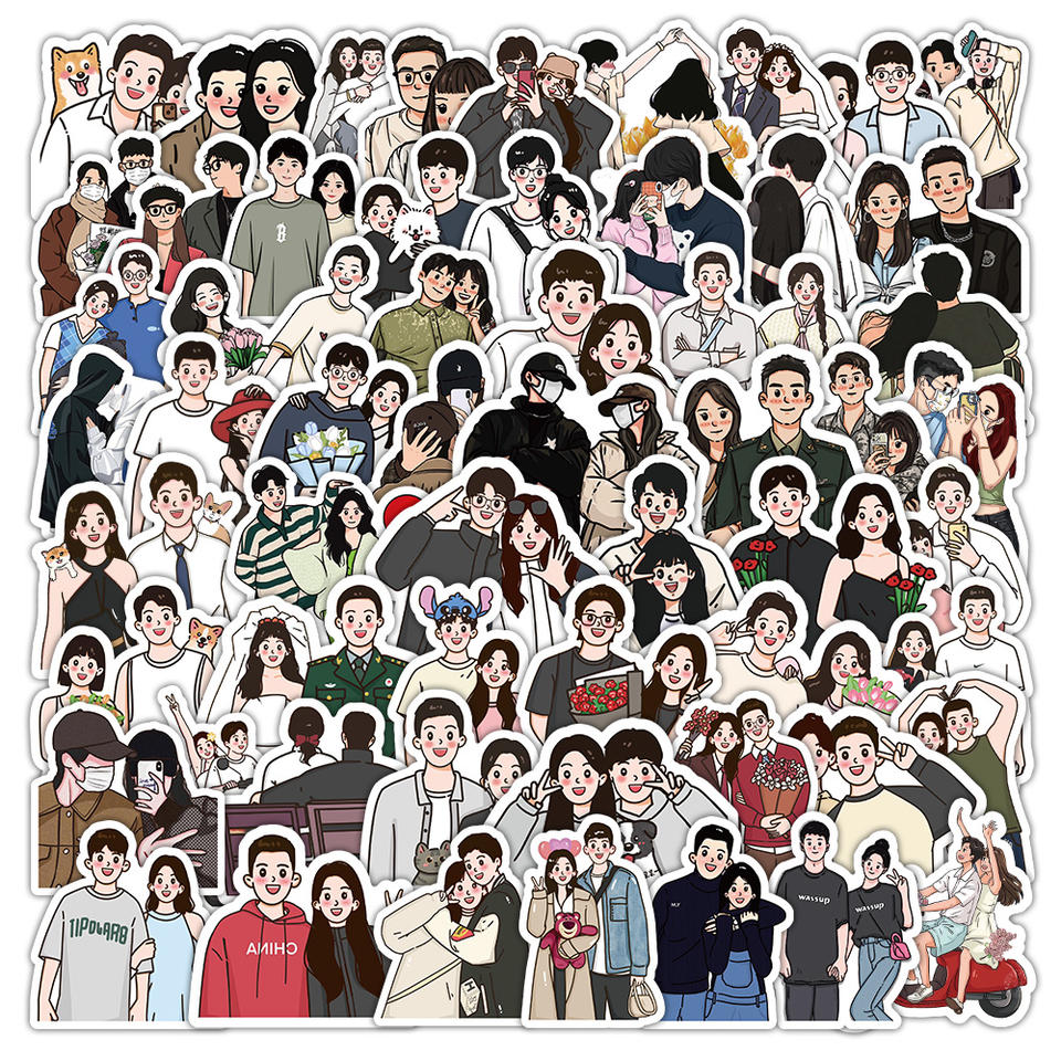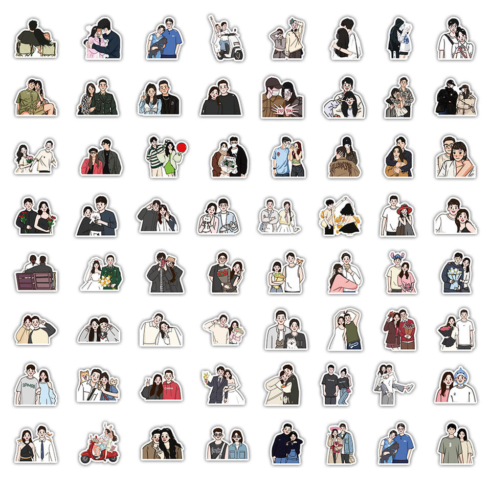 61 pz/borsa di foto di coppie di cartoni animati adesivi impermeabili adesivi da diario in vinile per Laptop Scrapbook decorazione da parete adesivi per amanti