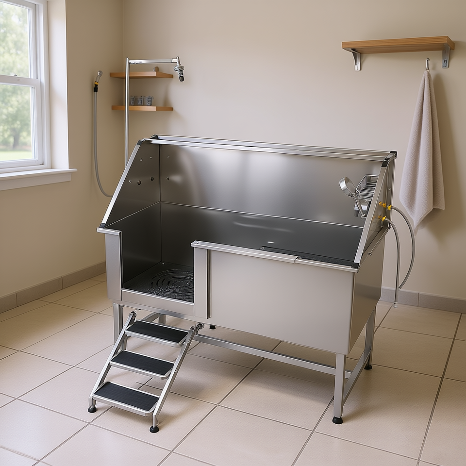 Stainless Steel Dog Grooming Bath Tub 62 Inch With Left Side Water Filter For Pet Cleaning Indoor Use