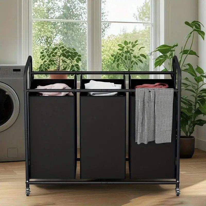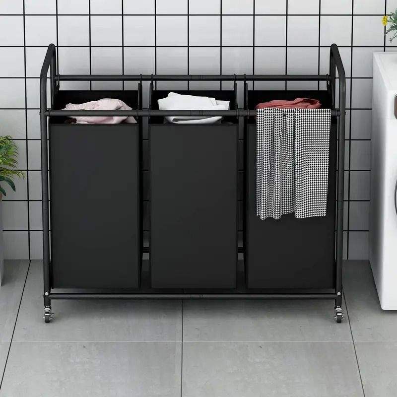 Cesto Portabiancheria con Ruote da 240 Litri, Resistente, con 3 Sacchi in Tessuto Durevole, Ruote Bloccabili e Sacchi Rimovibili