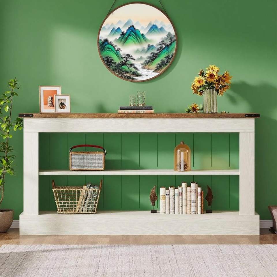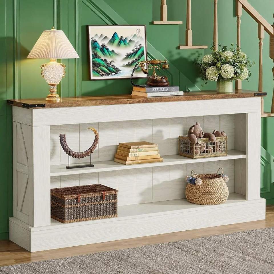 Consolle da 63 pollici con ripiani, tavolo stretto per ingresso, corridoio, tavoli consolle per ingresso