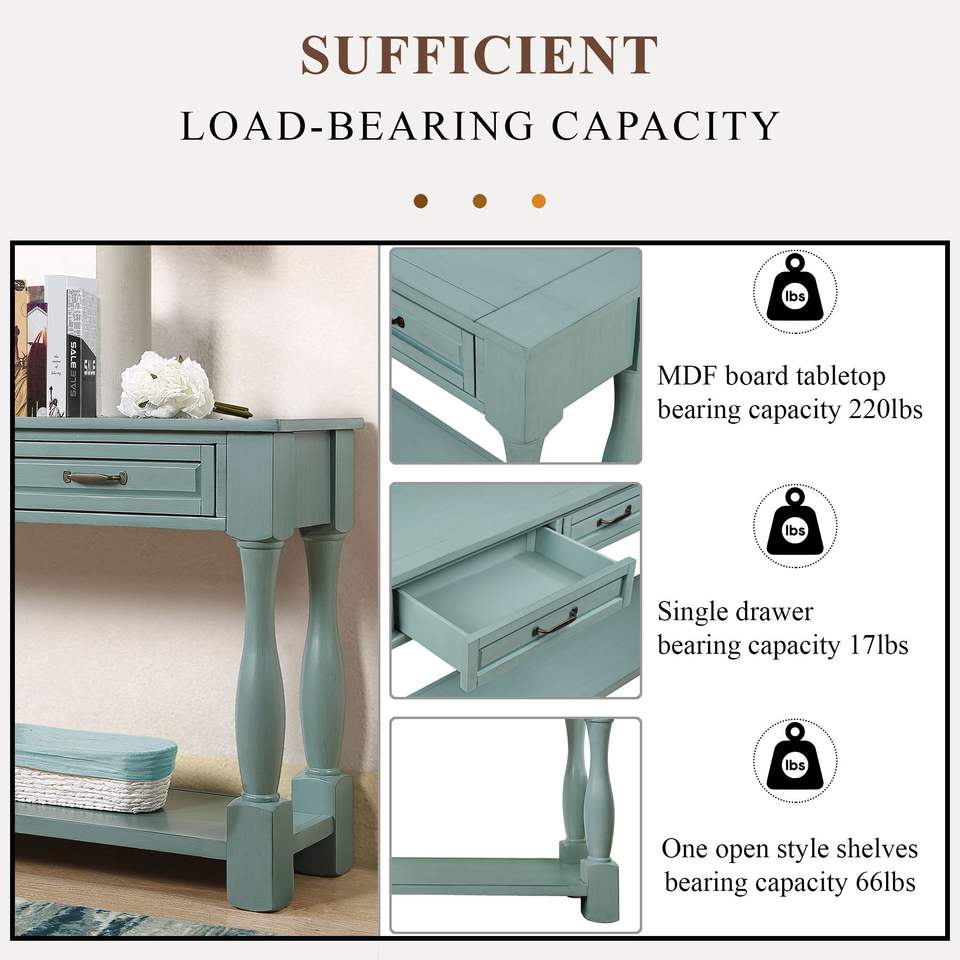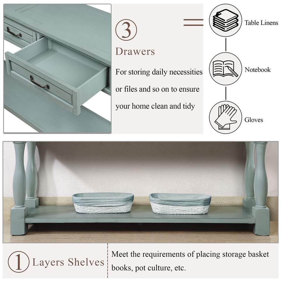 Consolle da 63 Pollici Facile da Montare con 3 Cassetti e 1 Ripiano Inferiore in Legno Extra Spesso per Ingresso, Corridoio o Uso come Tavolino da Divano
