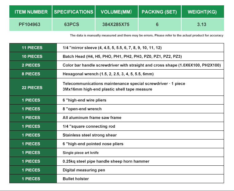 Tipo del corredo:Set di Attrezzi per Riparazioni