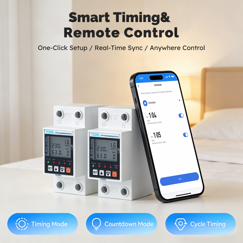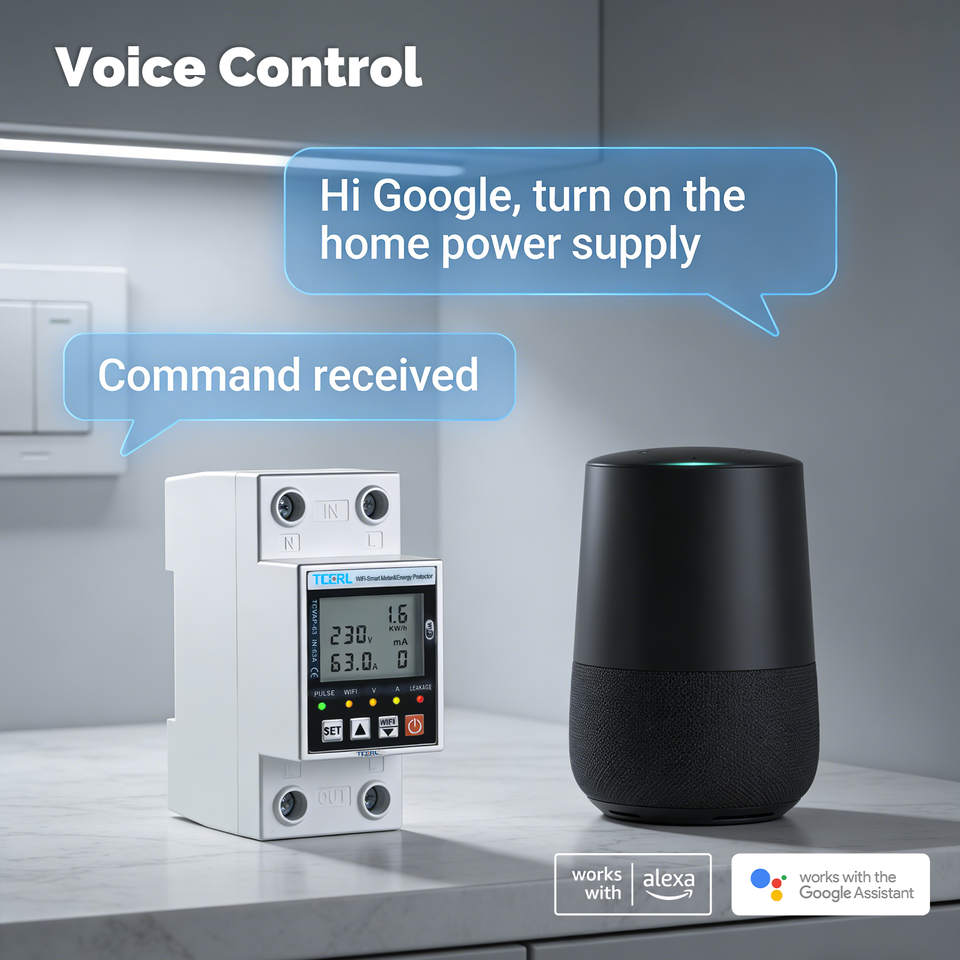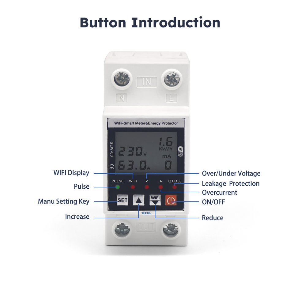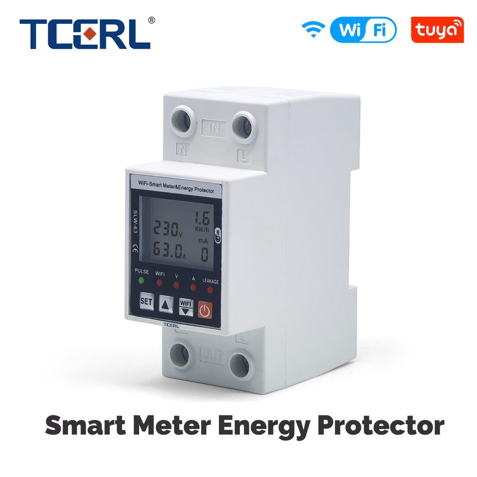 63A TUYA WiFi Smart interruttore di circuito con sopra sotto la tensione di protezione misuratore di energia telecomando 220V Din Rail doppio Display