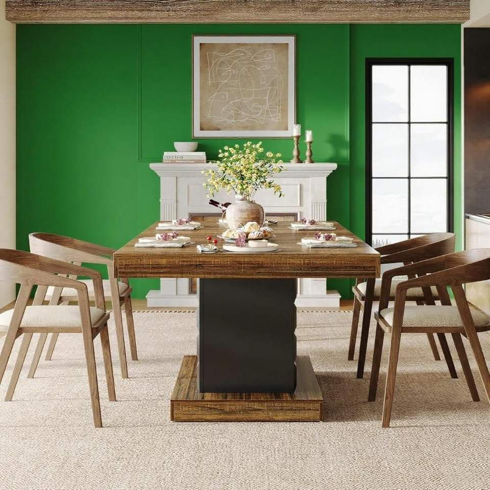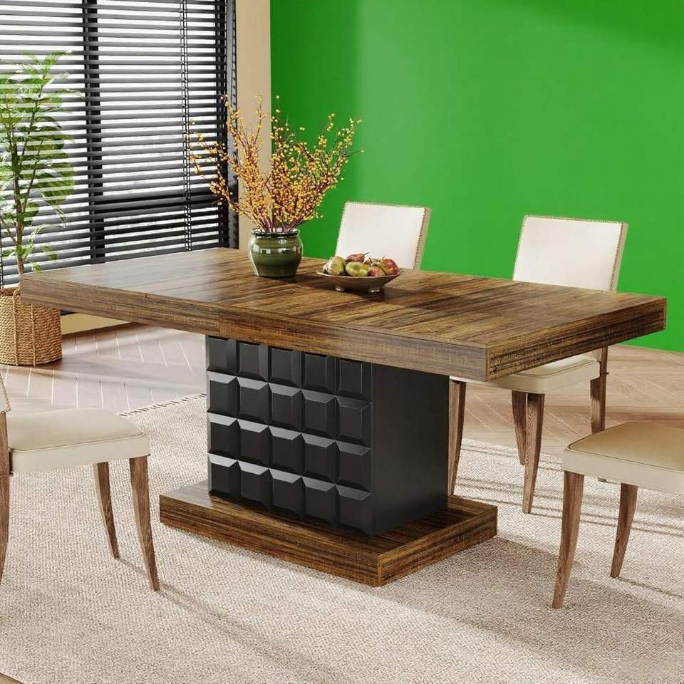 Tavolo da Pranzo Rettangolare in Legno Marrone e Nero da 63mm per 4-6 Persone