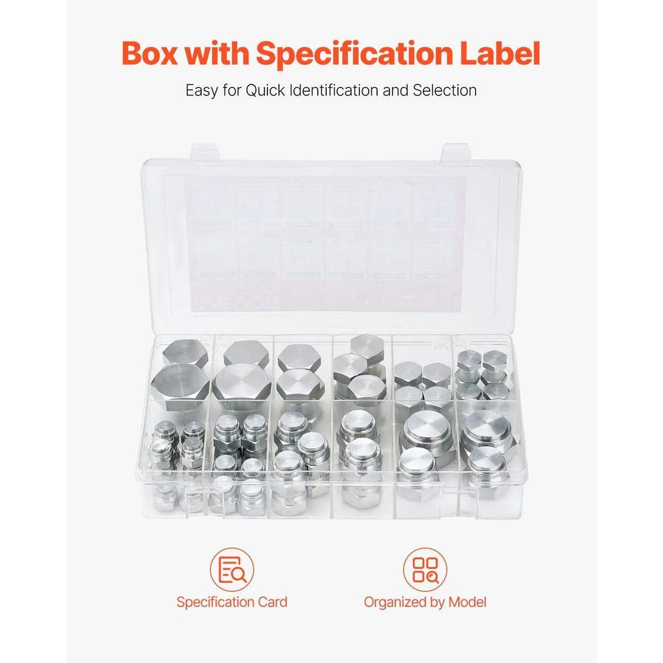 Set di 64 Pezzi di Accessori per Utensili Idraulici di Precisione BSPP in Acciaio Zincato per Filettatura Pesante