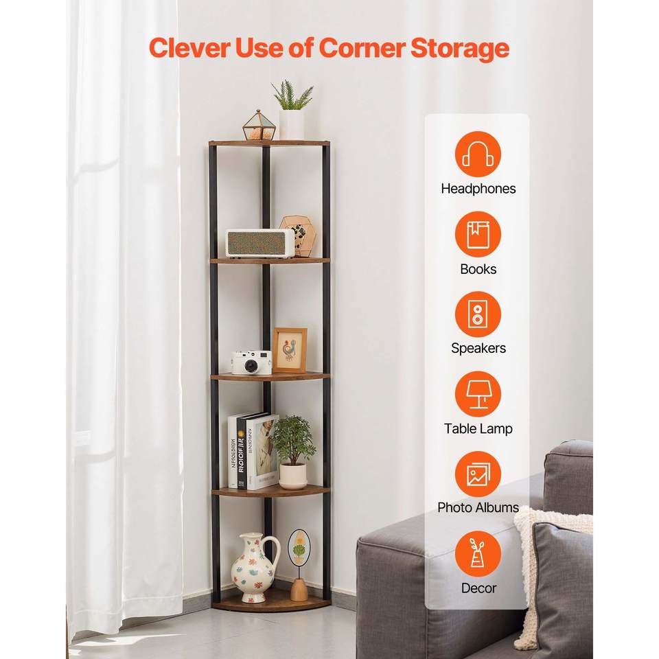 Libreria Angolare a 5 Ripiani con Luci LED, Altezza 162 cm, con Scaffali per Oggetti da Collezione, Mensola Multiuso da Parete e Espositore