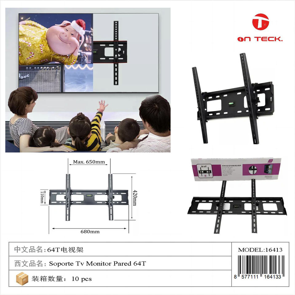 Supporto TV On Teck Sa De Cv 64T, staffa metallica inclinabile regolabile per montaggio a parete per televisore