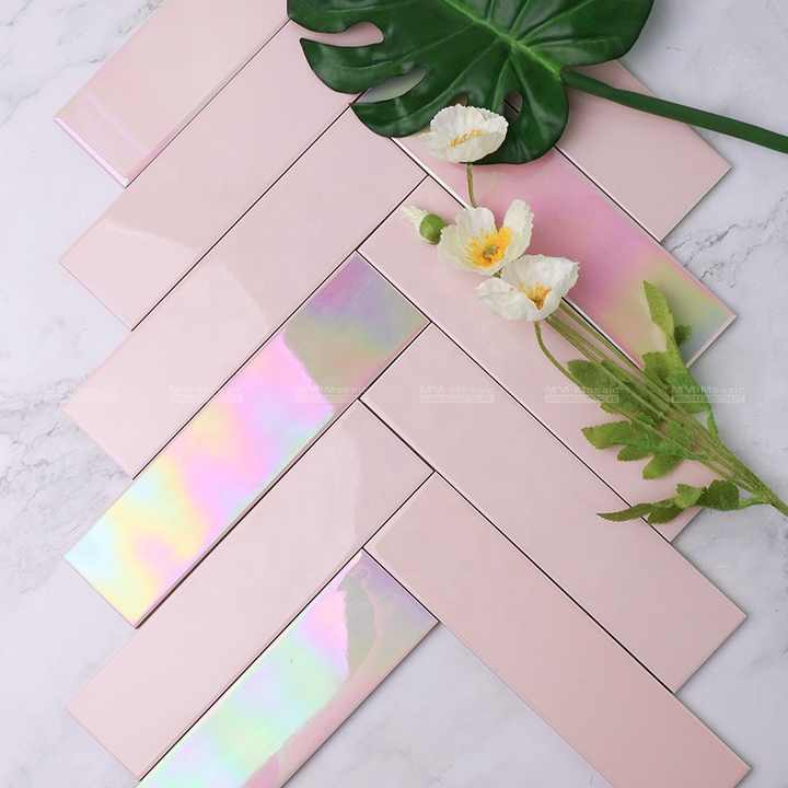65*265 millimetri Arcobaleno Iridescente Lungo Metropolitana Rosa Bagno In Ceramica Mattonelle Della Parete Per Backsplash Cucina Ristorante Progetto Alberghiero