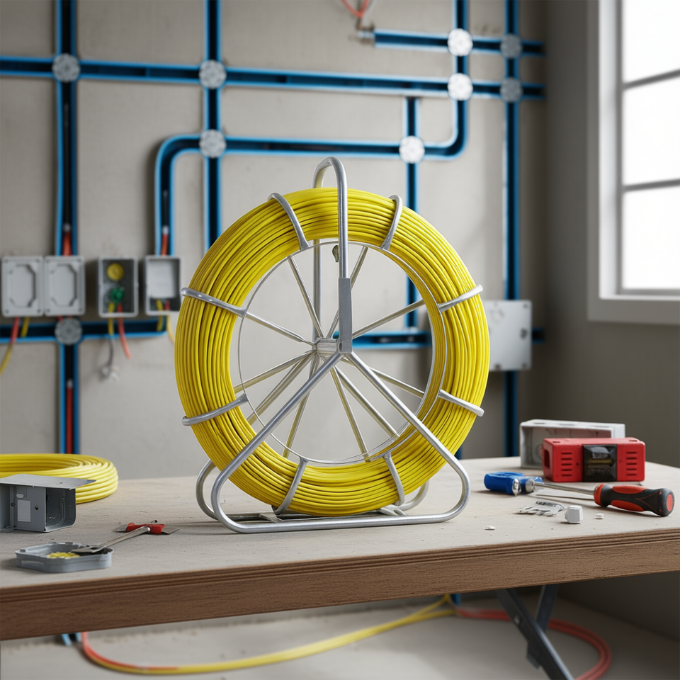 Fiberglass Fish Tape 656 Ft 1/4 Inch Conduit Pulling Wire Rodder Steel Reel Stand Non Conductive