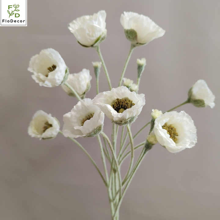 65CM Artificial Silk 5 Heads Poppy Flower Flocked Stem Large Table Home Decoration Multi Colors