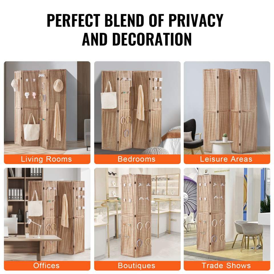 66.9 Inches Portable Wood Room Divider 4-Panel Folding Privacy Screen Indoor Carved Partition for Home Office Bedroom Decor