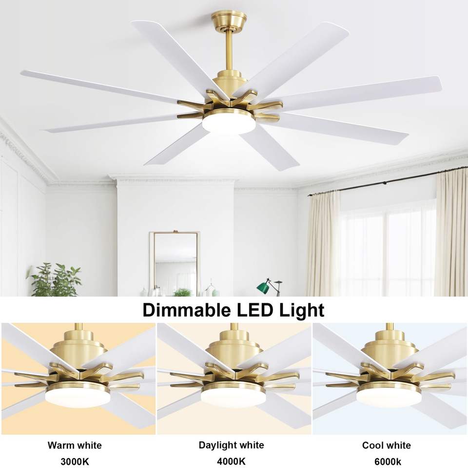 Ventilatore da Soffitto LED a Basso Profilo da 66 Pollici con Luci Dimmerabili, Telecomando Intelligente, 6 Velocità, Motore DC Reversibile, Materiale ABS Indiretto