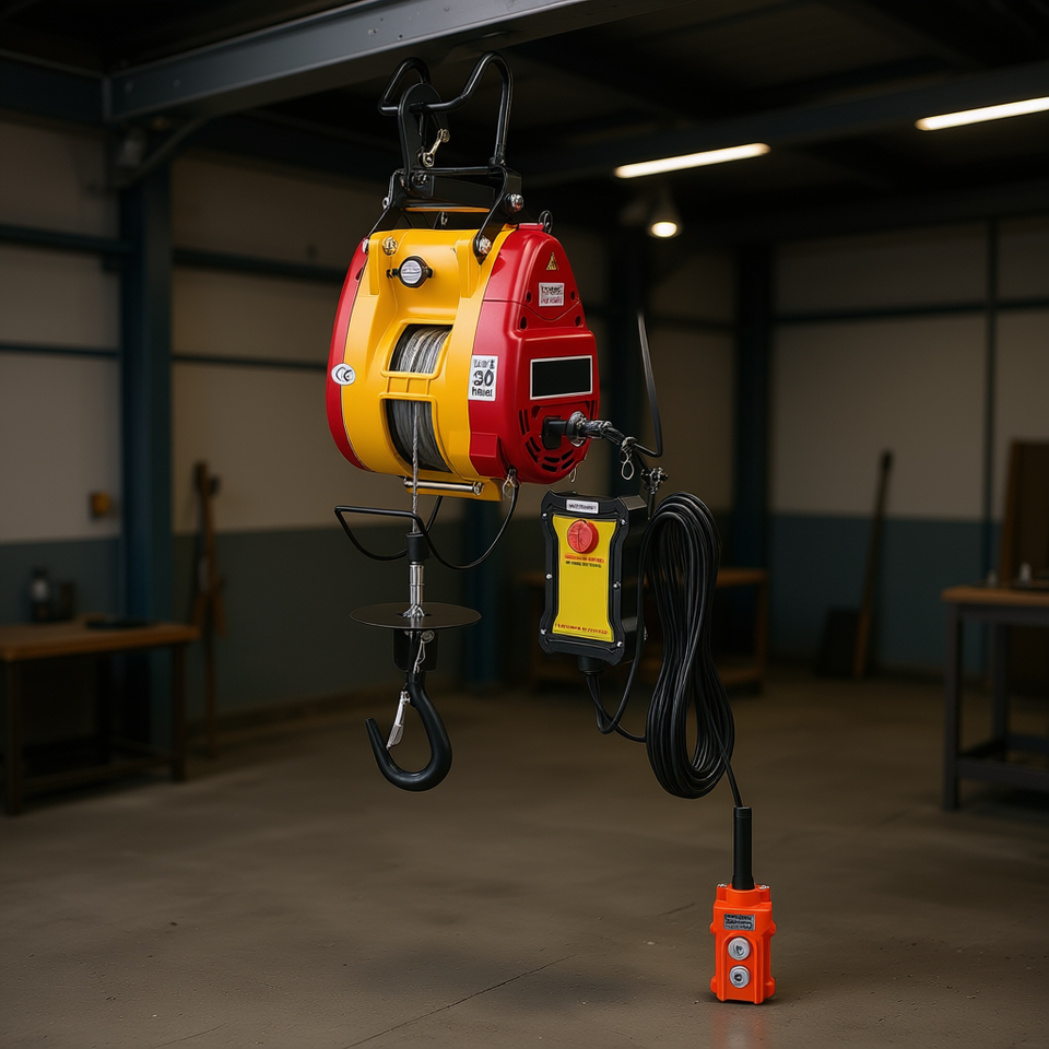Electric Hoist Winch 660 Lbs Capacity 1500W 98.4 Ft Lift Height Steel Wire Rope Grab Hook AC 220V Wired Remote Control