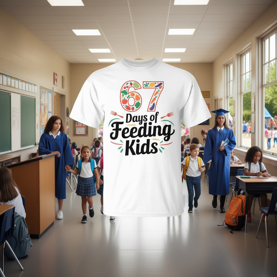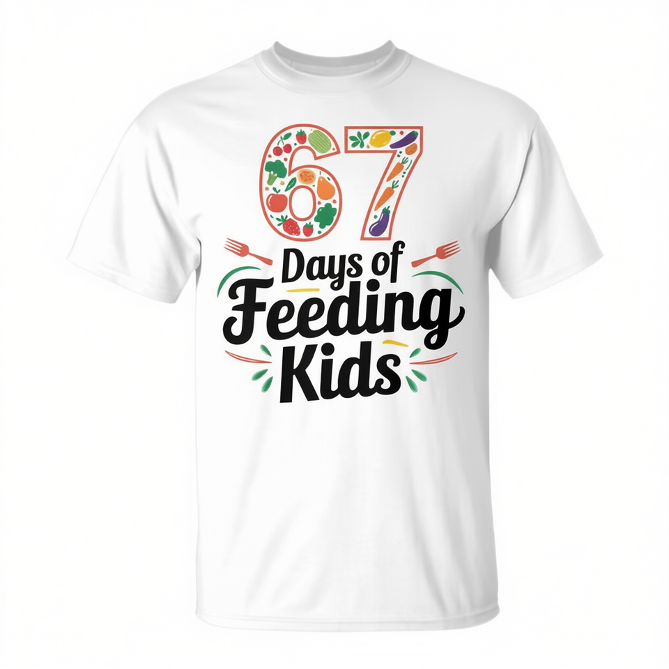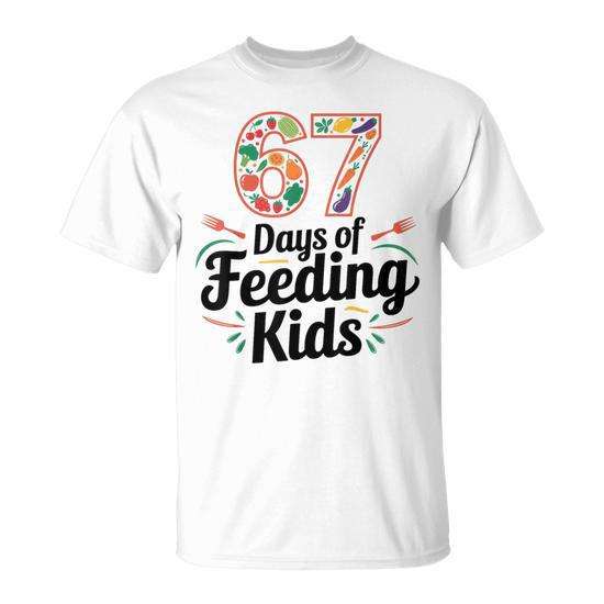 T-shirt 67 Days Of Feeding Kids a maniche corte, girocollo, unisex, per adulti, promozionale, per il ritorno a scuola, per la laurea