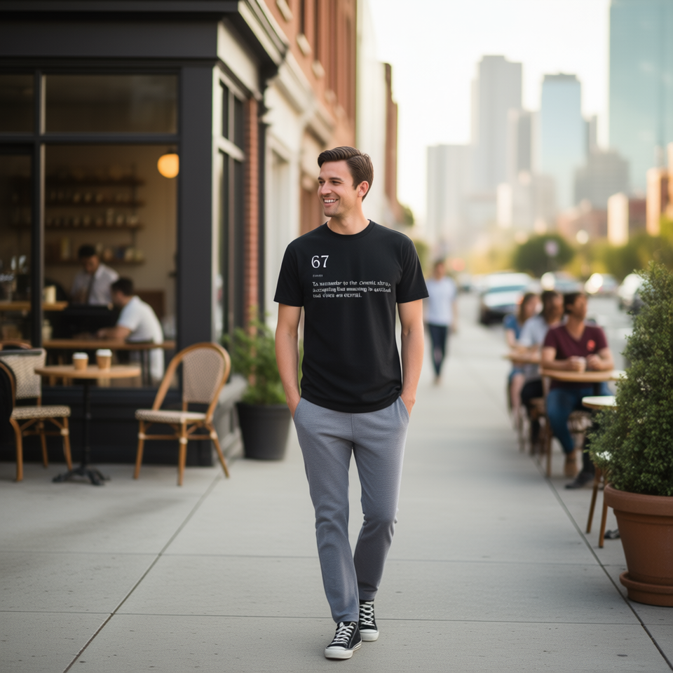 T-shirt 67 Definition Meme nera unisex per adulti taglia media
