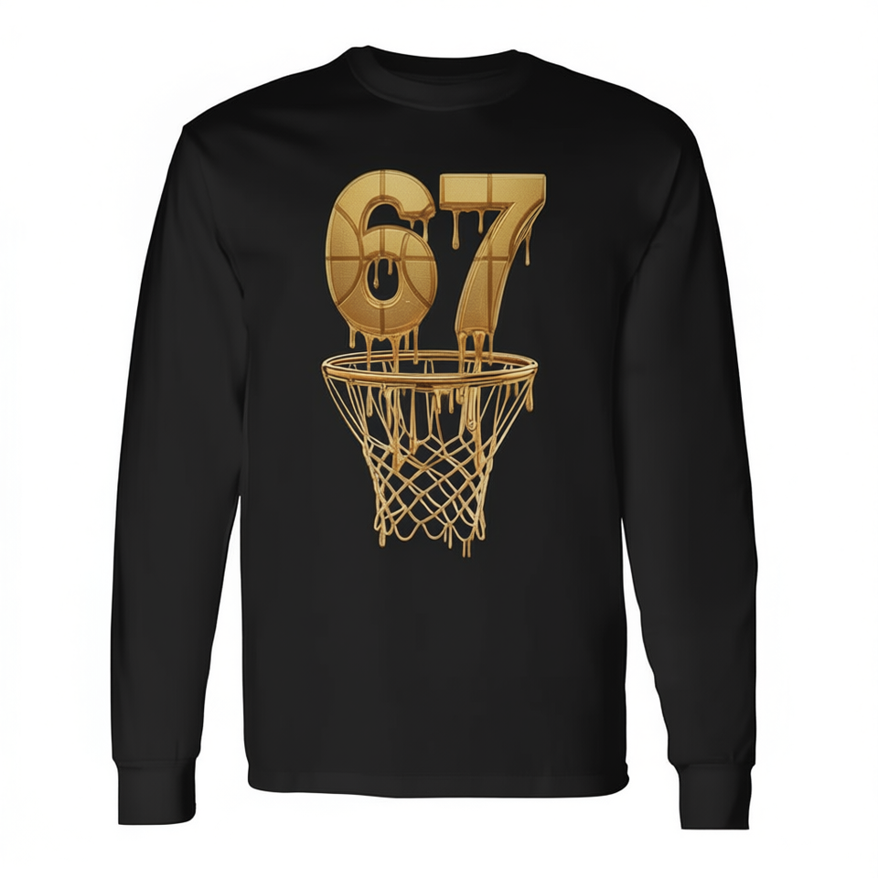 Maglietta a Maniche Lunghe Promozionale 67 Gold Drip Basketball Meme Gen Alpha Slang per Bambini di 6-7 Anni