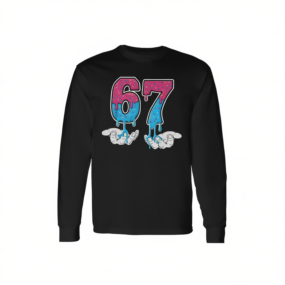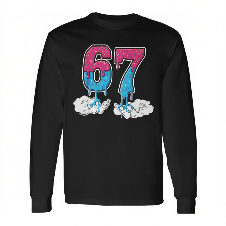 67 Ice Cream Drip Long Sleeve T-Shirt Boys Crew Neck Digital Print Meme Style