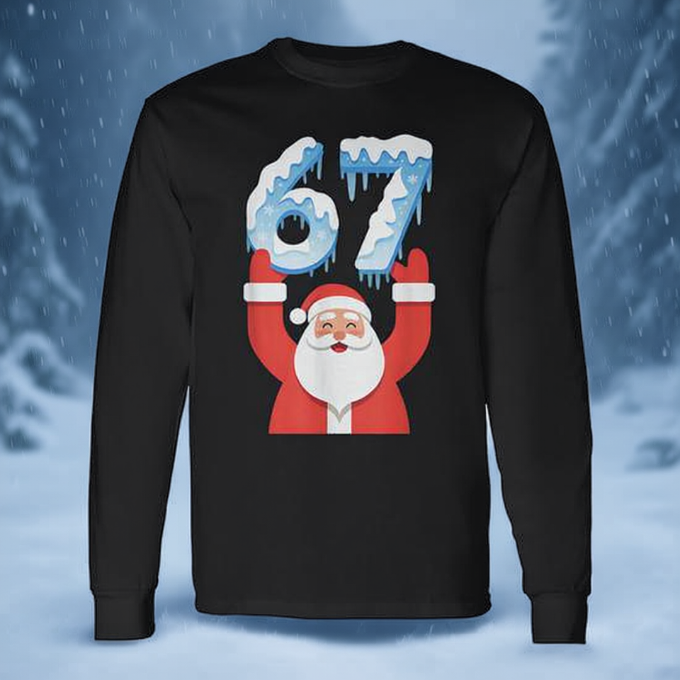 67 Maglietta a maniche lunghe Meme Babbo Natale con design invernale con neve e ghiaccio