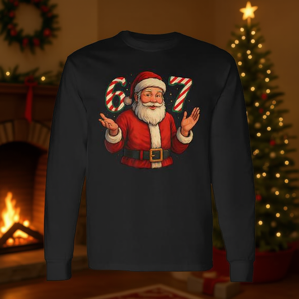 67 Maglietta a maniche lunghe natalizia in stile Meme Santa