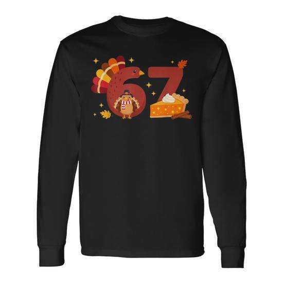 67 Meme Six Seven Turkey Pumpkin Pie T-shirt a maniche lunghe per il Ringraziamento