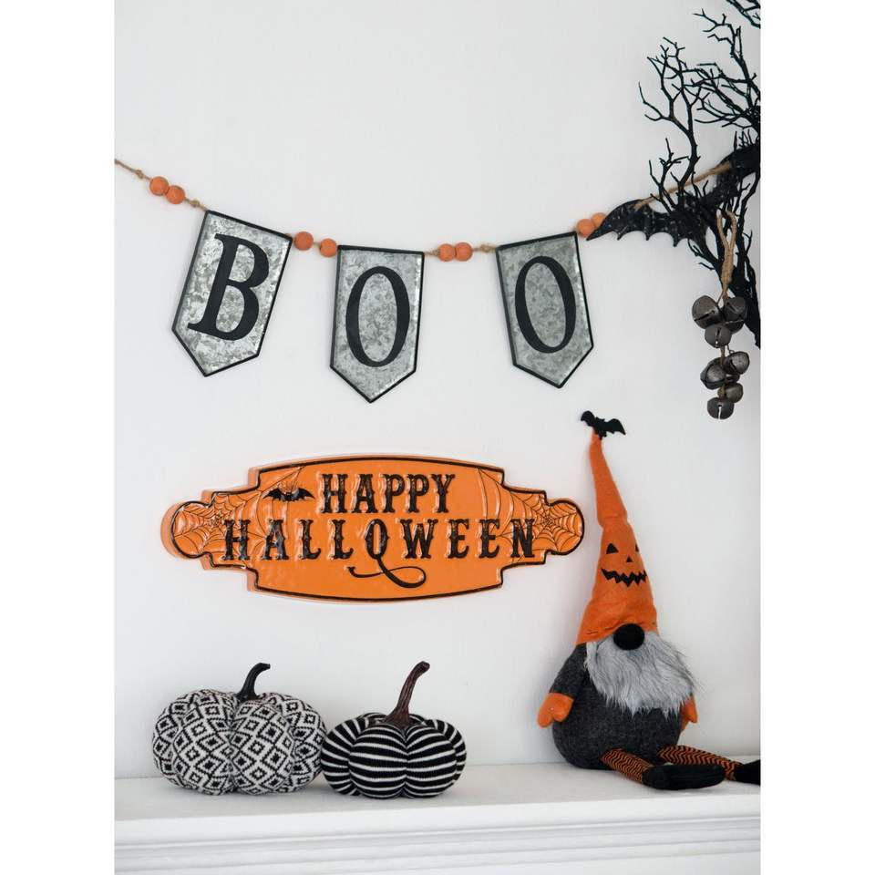 67x7.3"H Iron Boo Banner with Bats for Halloween Holiday Decor Party Banners