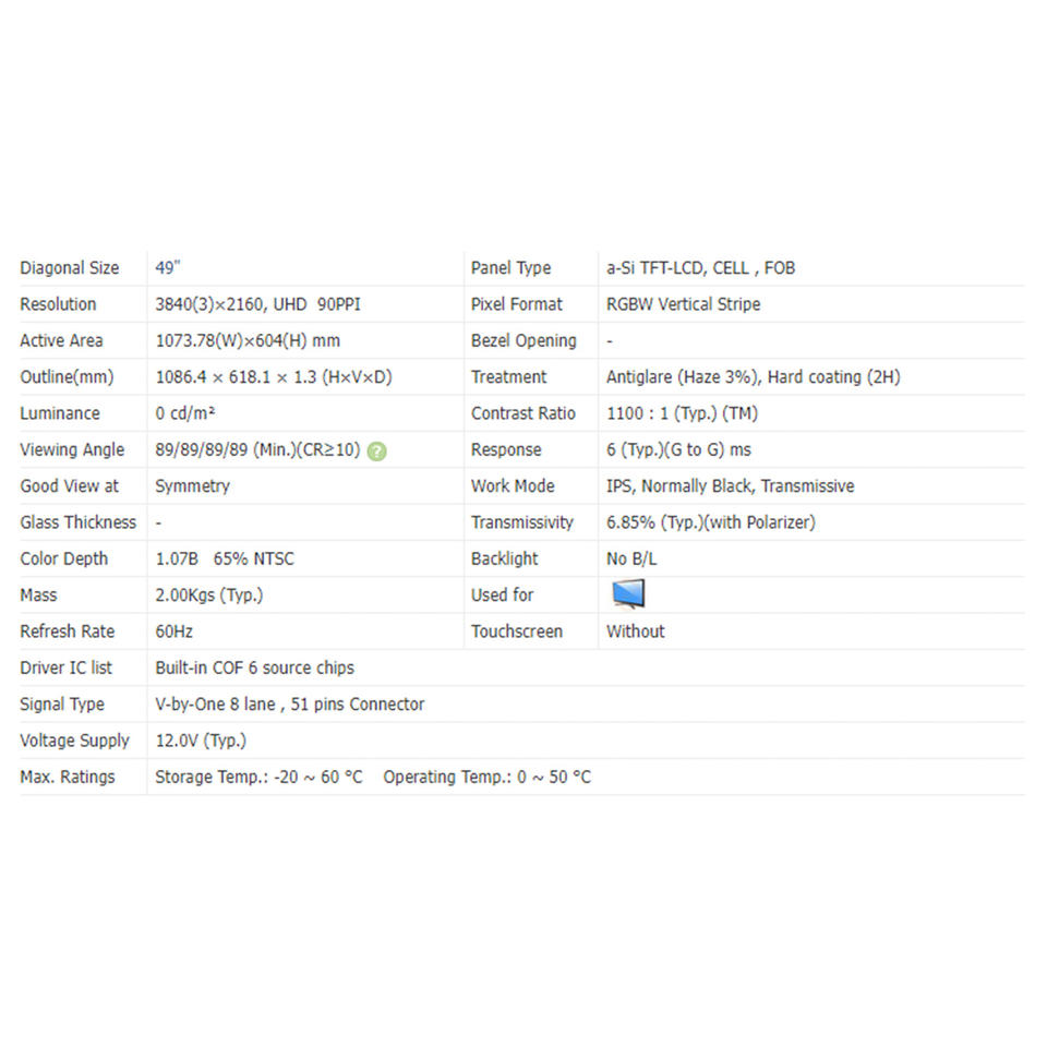 3840(RGB)* 2160 (UHD) 90PPIFormato Pixel