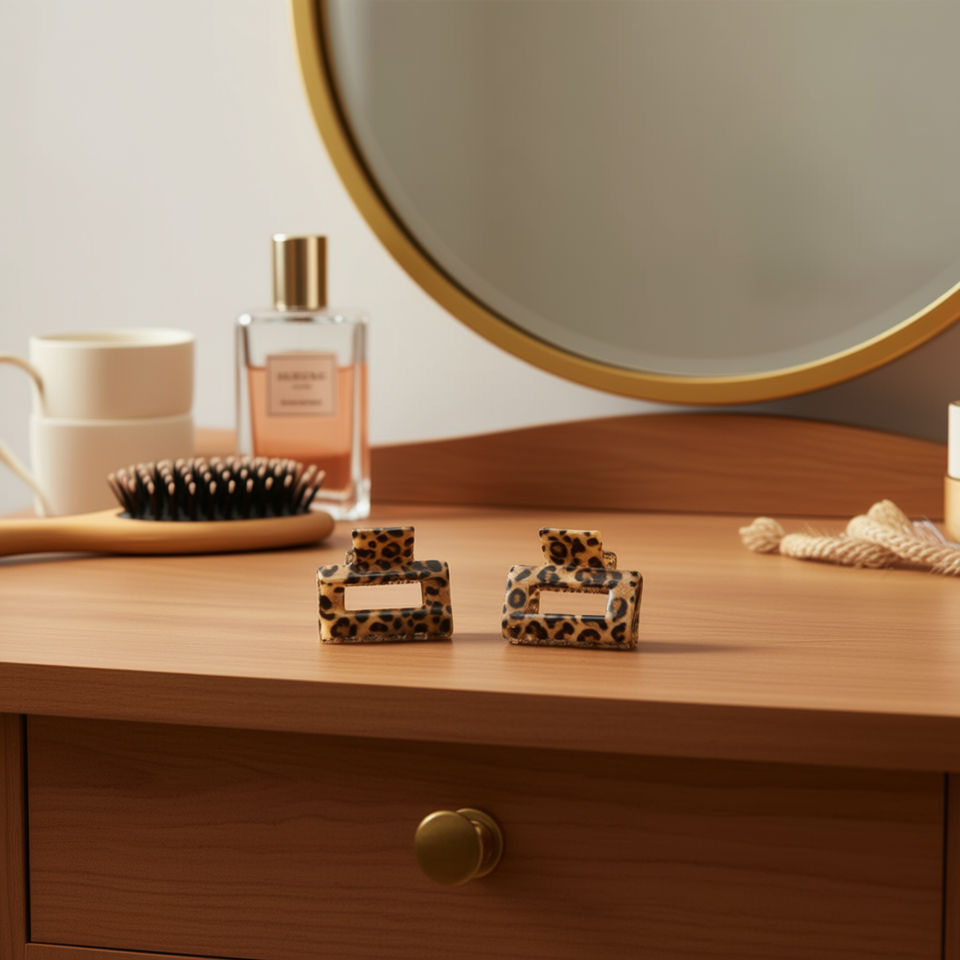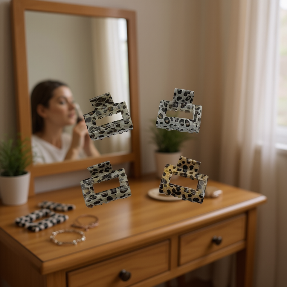Fermacapelli a Clip Quadrato Angelina con Stampa Leopardata 6Cm, Accessorio per Capelli da Donna, Moda Casual, Alta Qualità, in Acetato