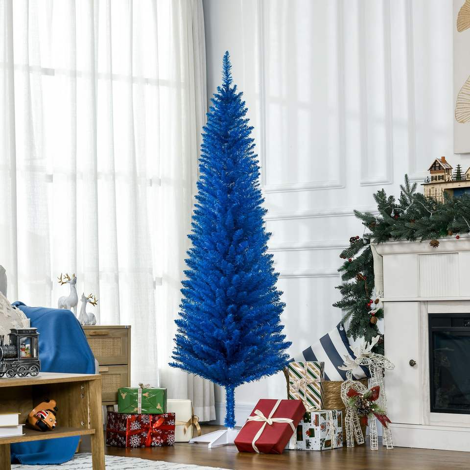 Albero di Natale a forma di matita blu da 180 cm con 390 punte realistiche e base in plastica, albero di Natale decorato