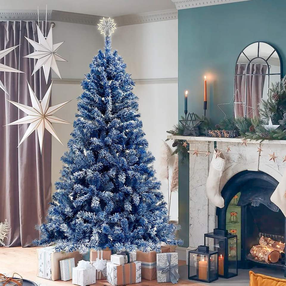 Albero di Natale Artificiale Pre-Illuminato da 180 cm con Rami Pieghevoli, Effetto Neve e 750 Punte di Rami - X-m