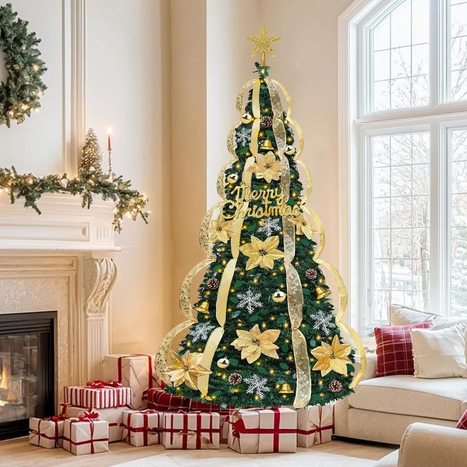 Albero di Natale Pop-Up da 1,8 m, Bicolore con 80 Ornamenti, 200 Luci Bianco Caldo Pre-illuminate e Pre-decorate per un Montaggio in 1 Minuto