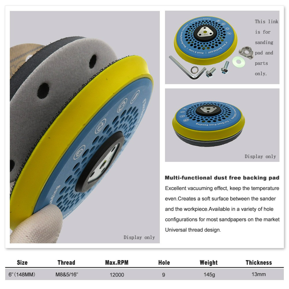 Platorello di supporto per levigatrice da 6 pollici a 9 fori, blu, senza polvere, per lucidatura elettrica, per levigatura e lucidatura di legno, metallo e mobili