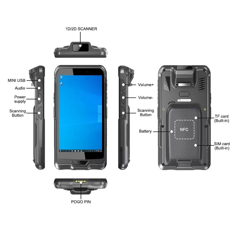 6 pollici Windows sistema palmare Computer Mobile collettore di dati PC Tablet con 2D codice a barre di scansione robusto PDA con Trigger