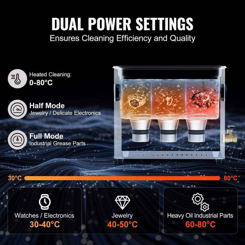 Pulitore a Ultrasuoni Digitale Industriale 6L 180W con Modalità Delicata e Frequenza 40kHz