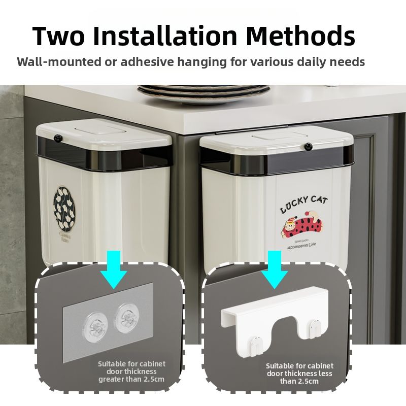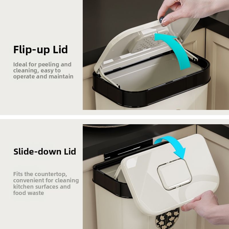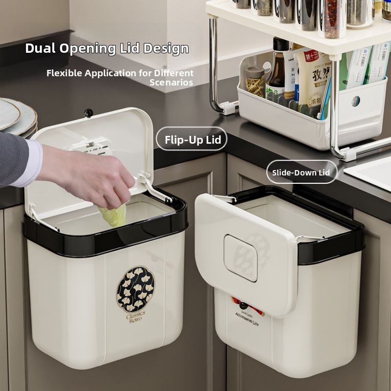 Cestino per Rifiuti da Cucina a Parete 6L/8L, Bidone Domestico Sospeso con Coperchio a Doppia Apertura, Antiodore per Armadietto, Logo Personalizzabile