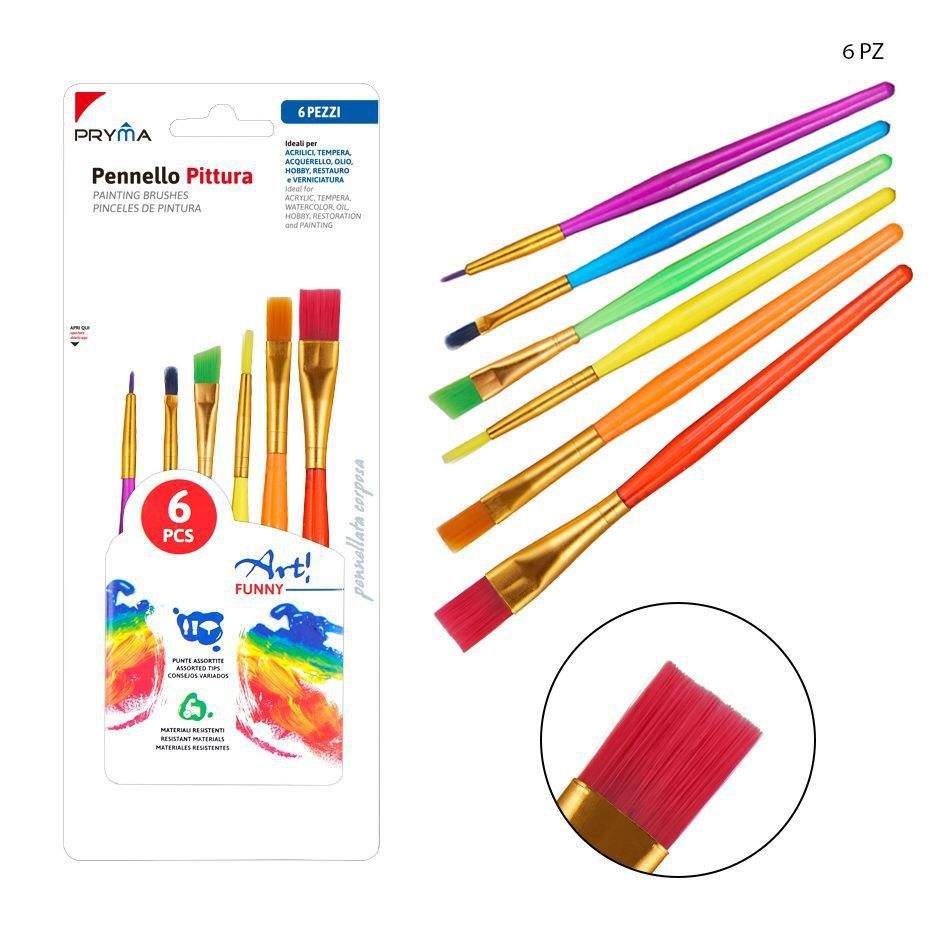 6P Plastic Artist Oil Watercolor Paint Brushes Nylon Hair Material for School Supplies