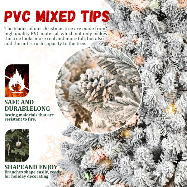 6ft Artificial Christmas Tree 888 PVC Branch Tips 350L Colorful LED Memory Wire Pine Cone*35pcs Iron Hing Wire Christmas Tree