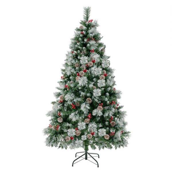 Albero di Natale Pre-Illuminato da 180 cm con 55 Bacche Rosse e 55 Pigne, Luci Cambiabili, Facile da Montare per Casa/Ufficio/Feste